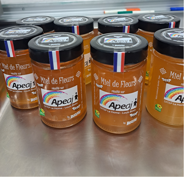 Le DITEP Le Home-Louis Bivès (Association APEAJ) vous présente ses premiers pots de miel (de 250 grammes) issus d’une récolte provenant de nos 4 ruches situées sur le site Louis Bivès.